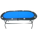 73" Blue 8 Player Casino Texas Holdem w/ Stainless Steel Cup Holders Poker Table